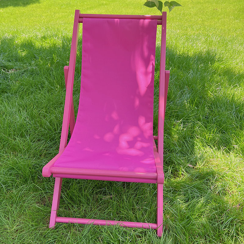 • Fun and vibrant pink folding deck chair, ideal for gardens, beaches, or patios.